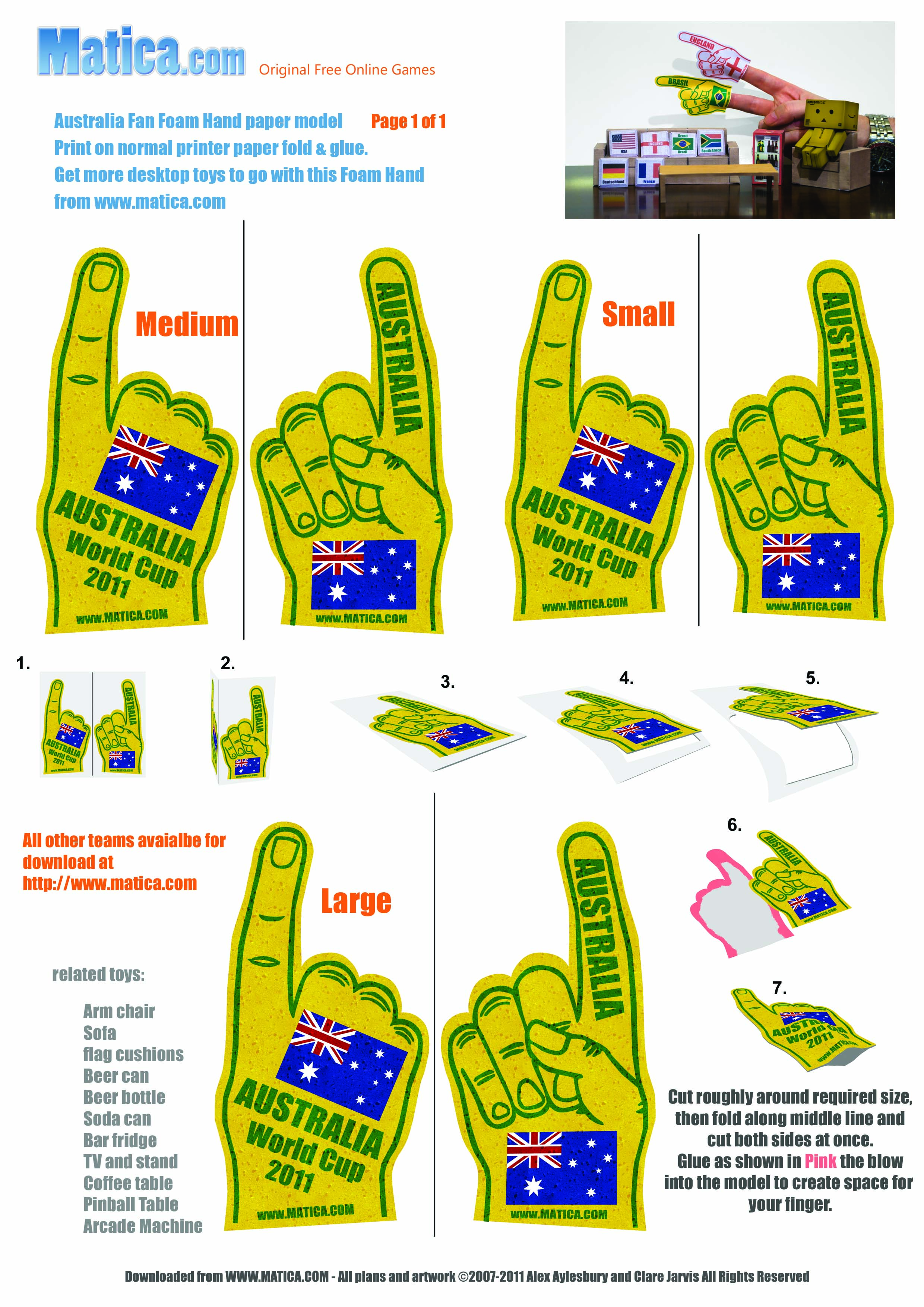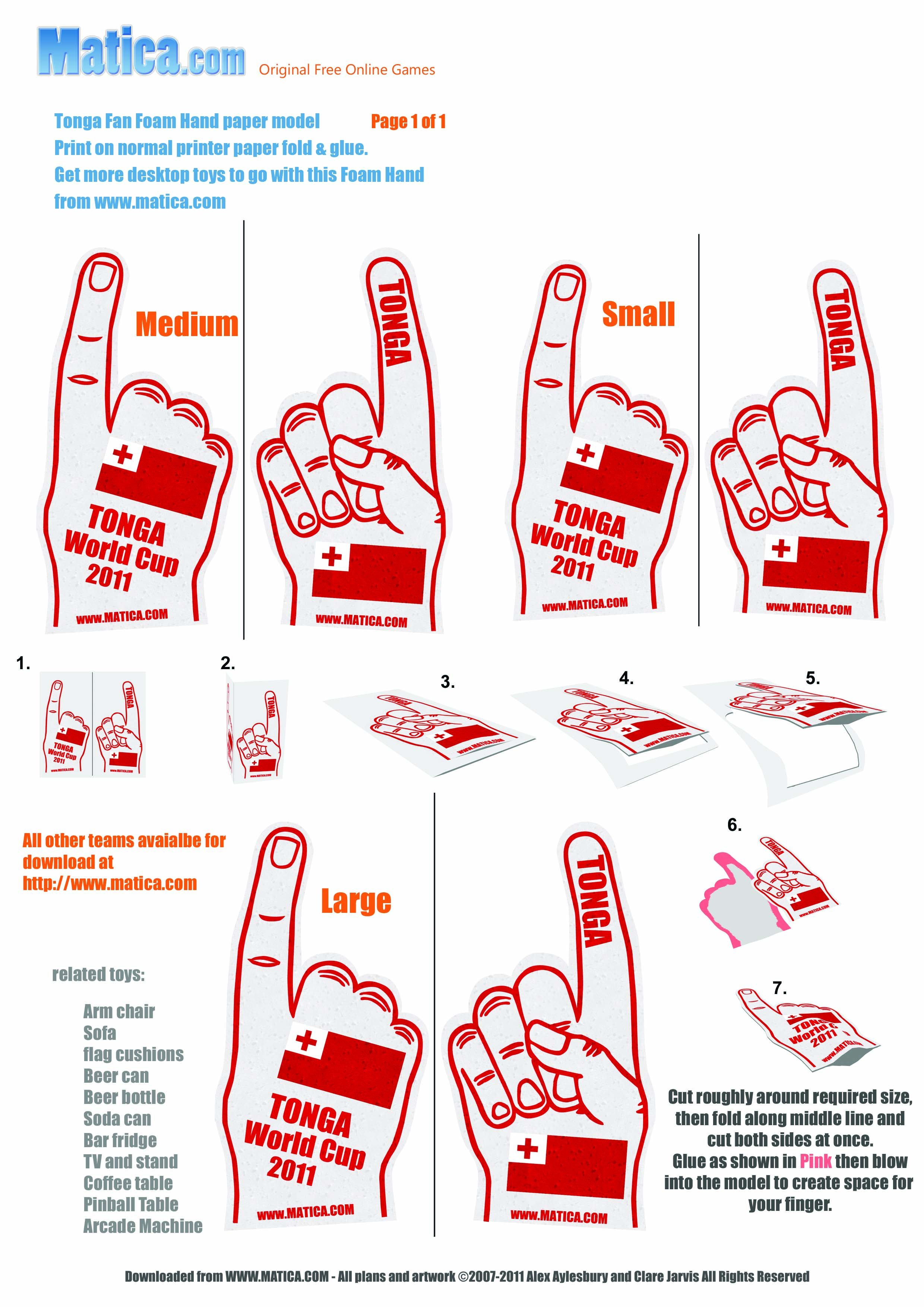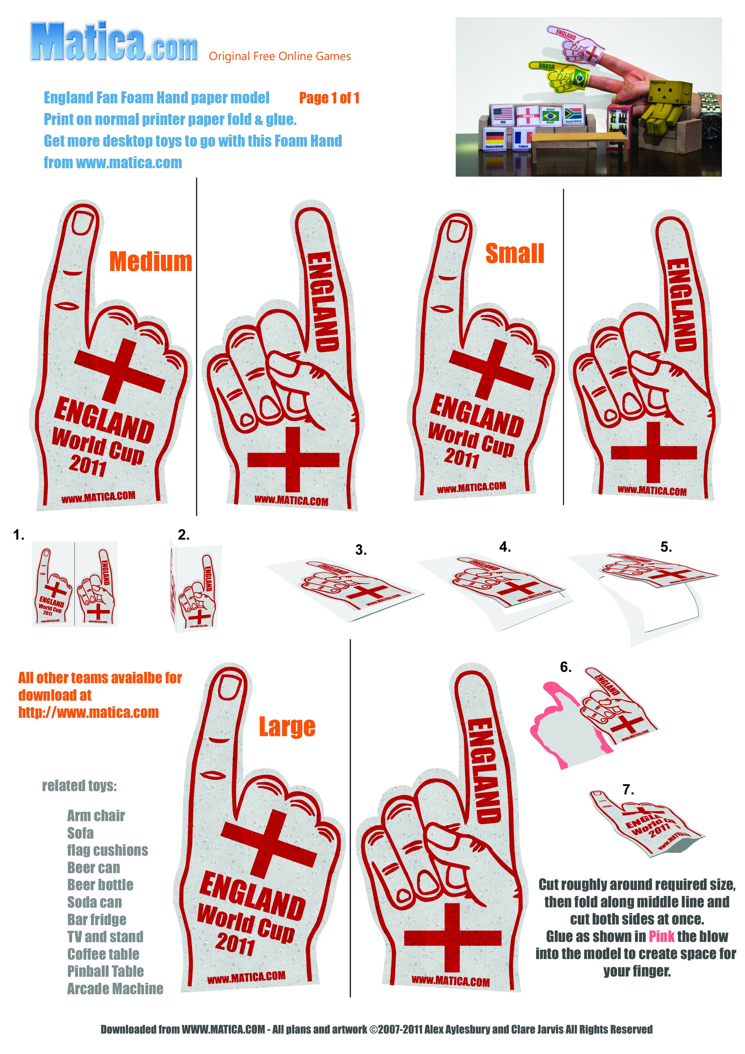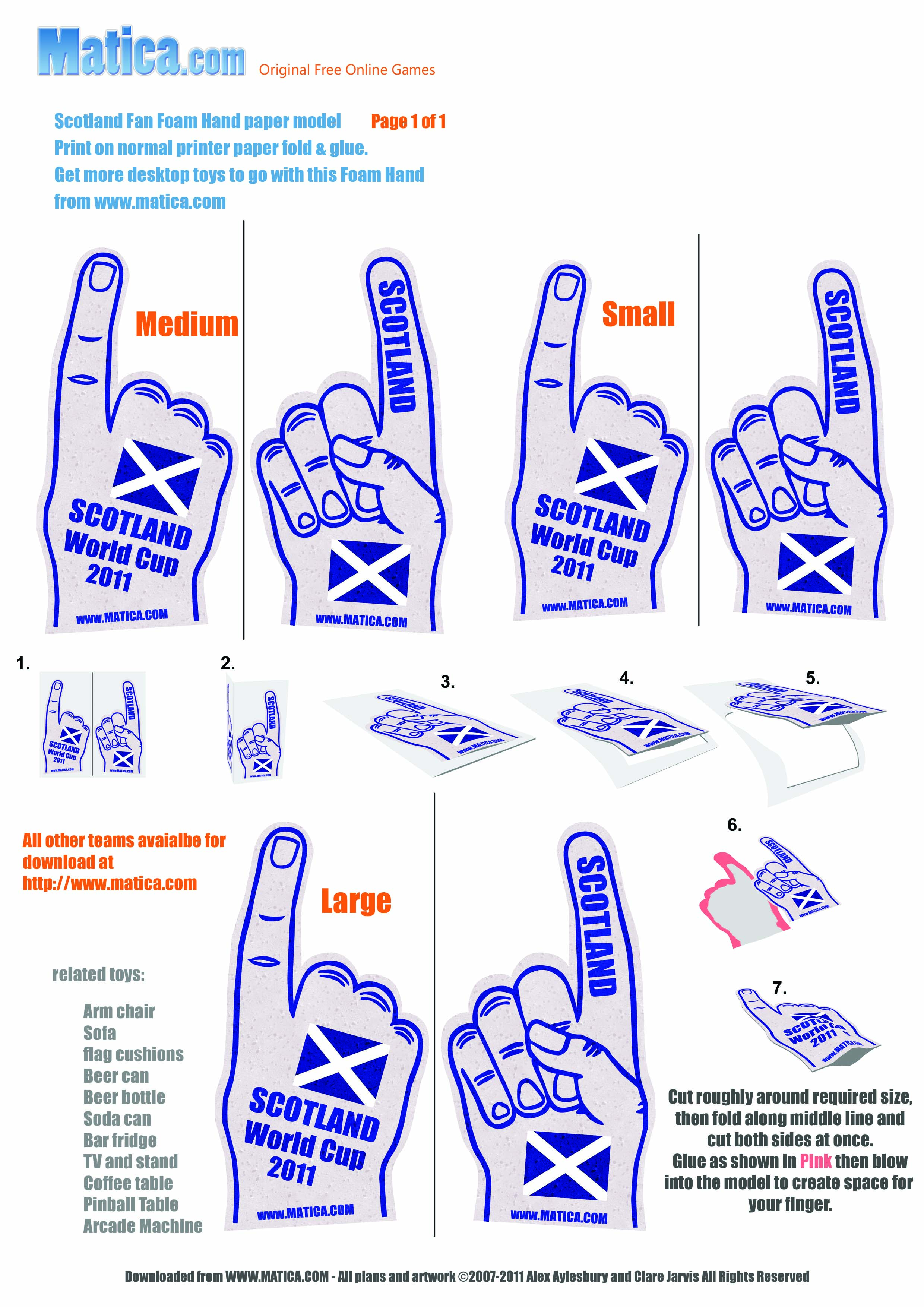 The foam hand plans fit onto one page of A4 paper. Please see below to download your country or team.
