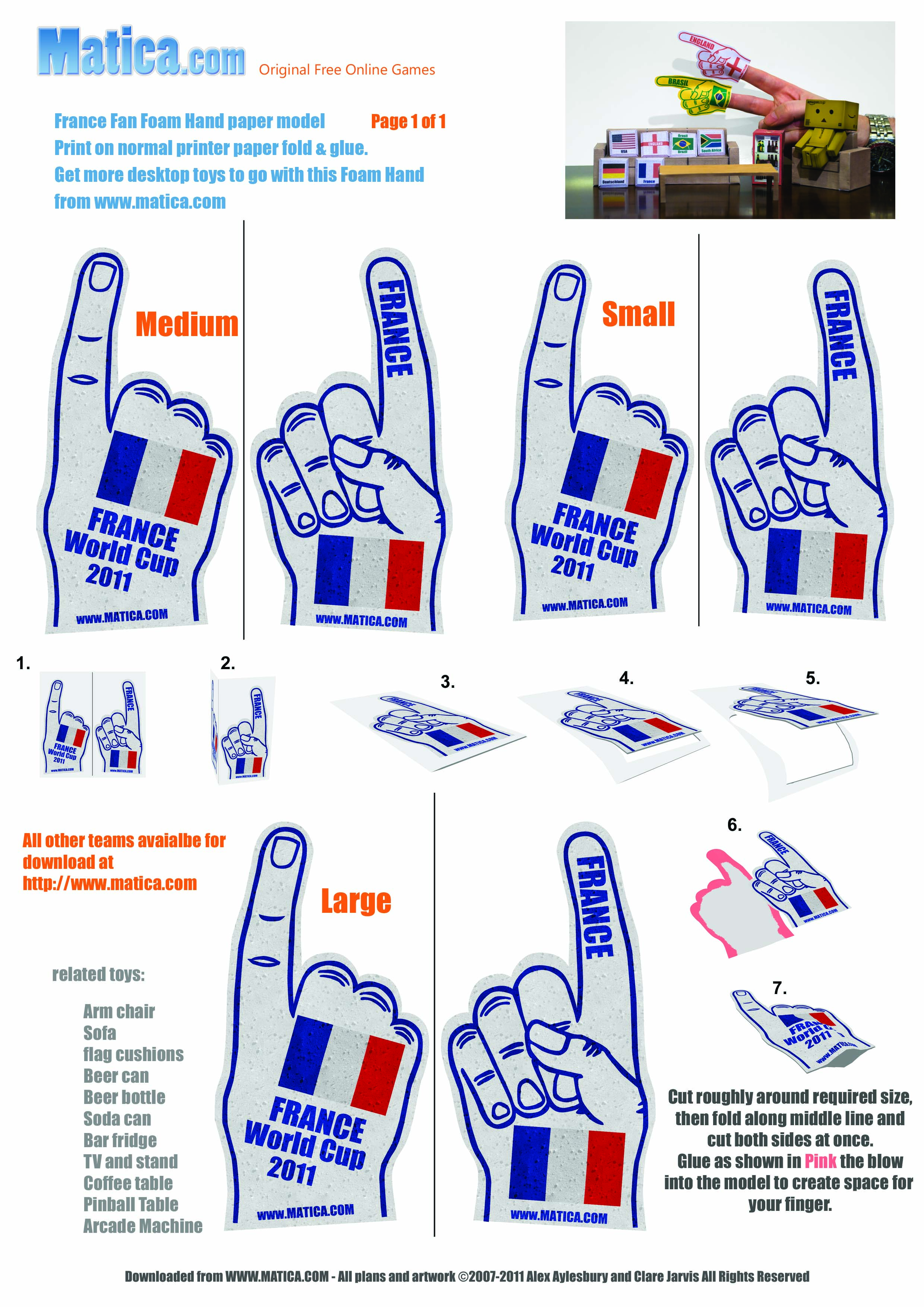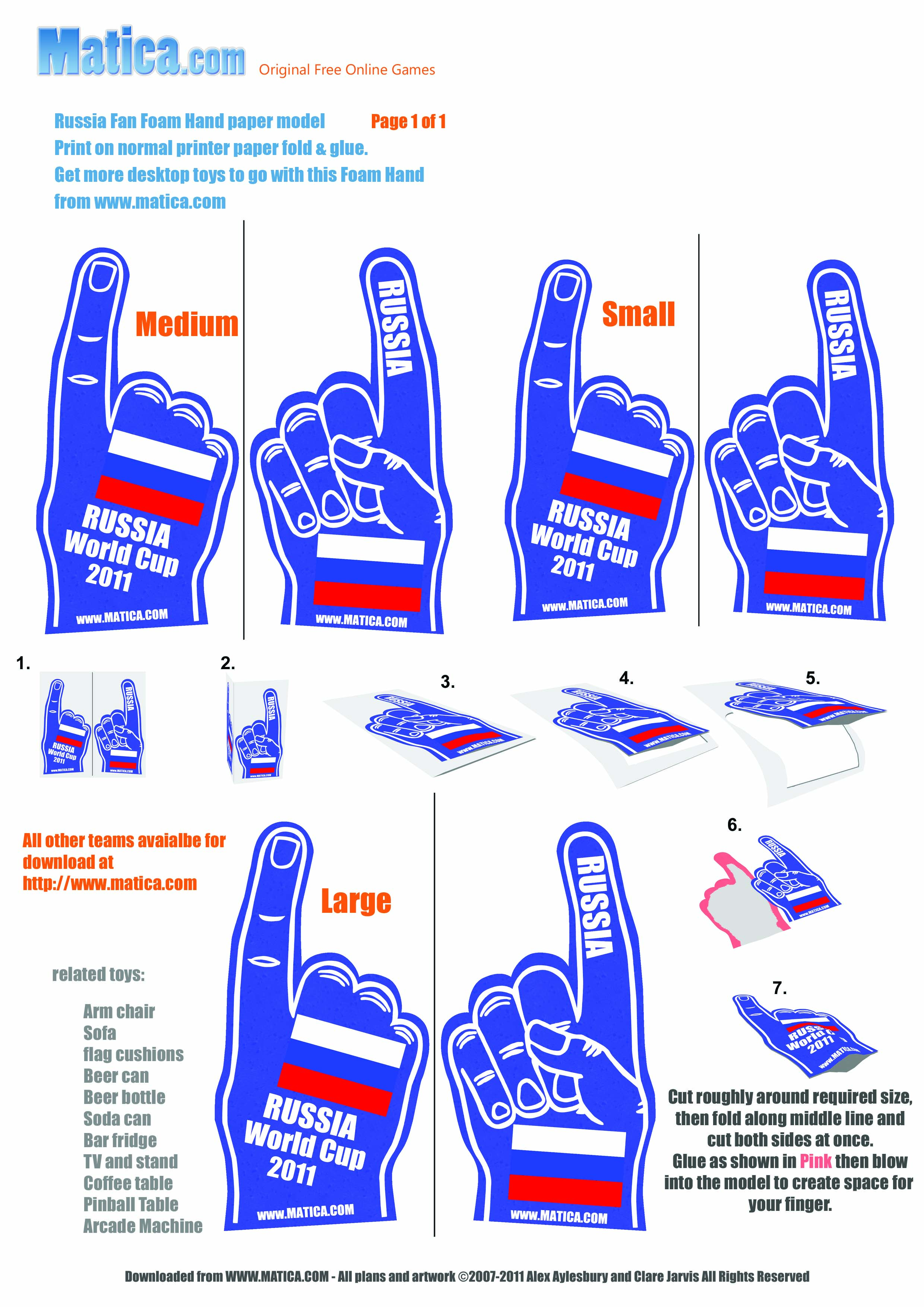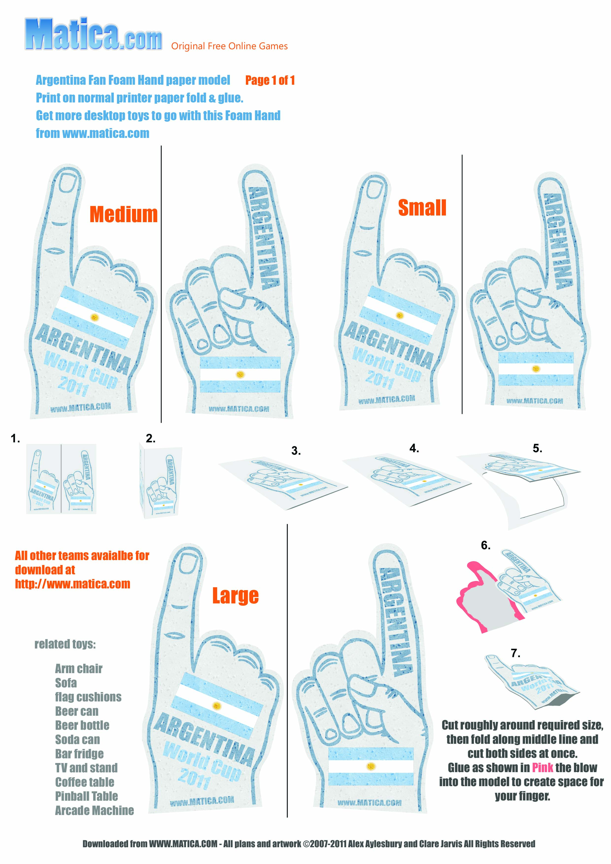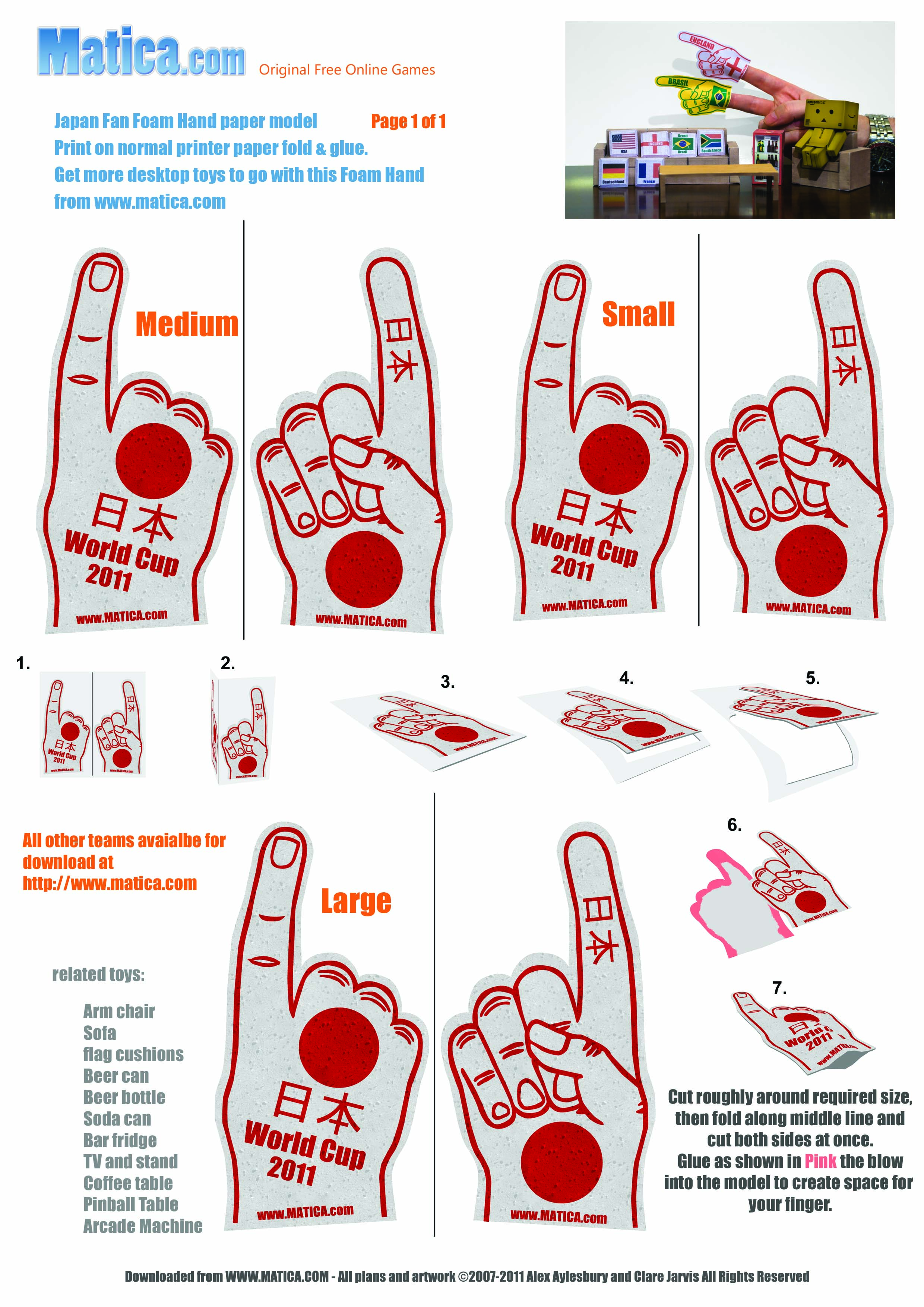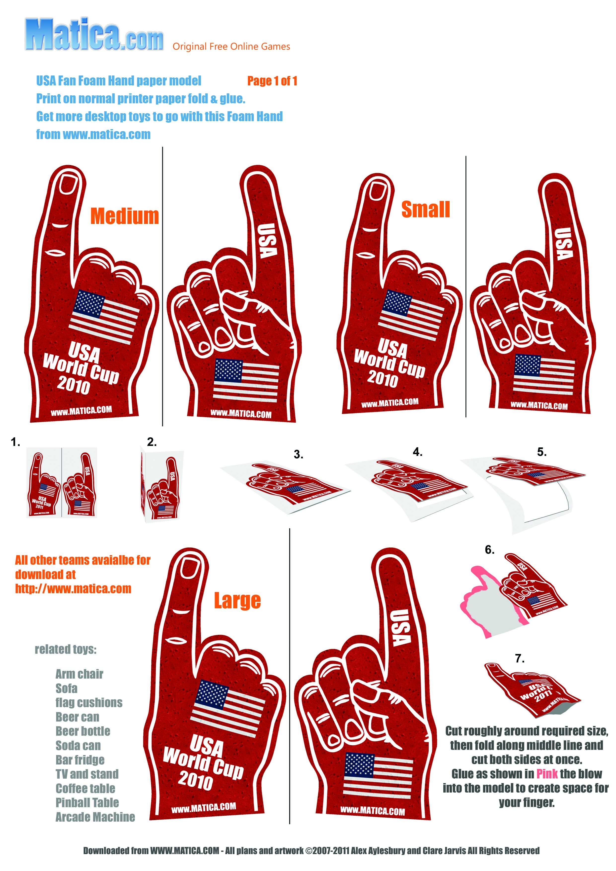 The foam hand plans fit onto one page of A4 paper. Please see below to download your country or team.