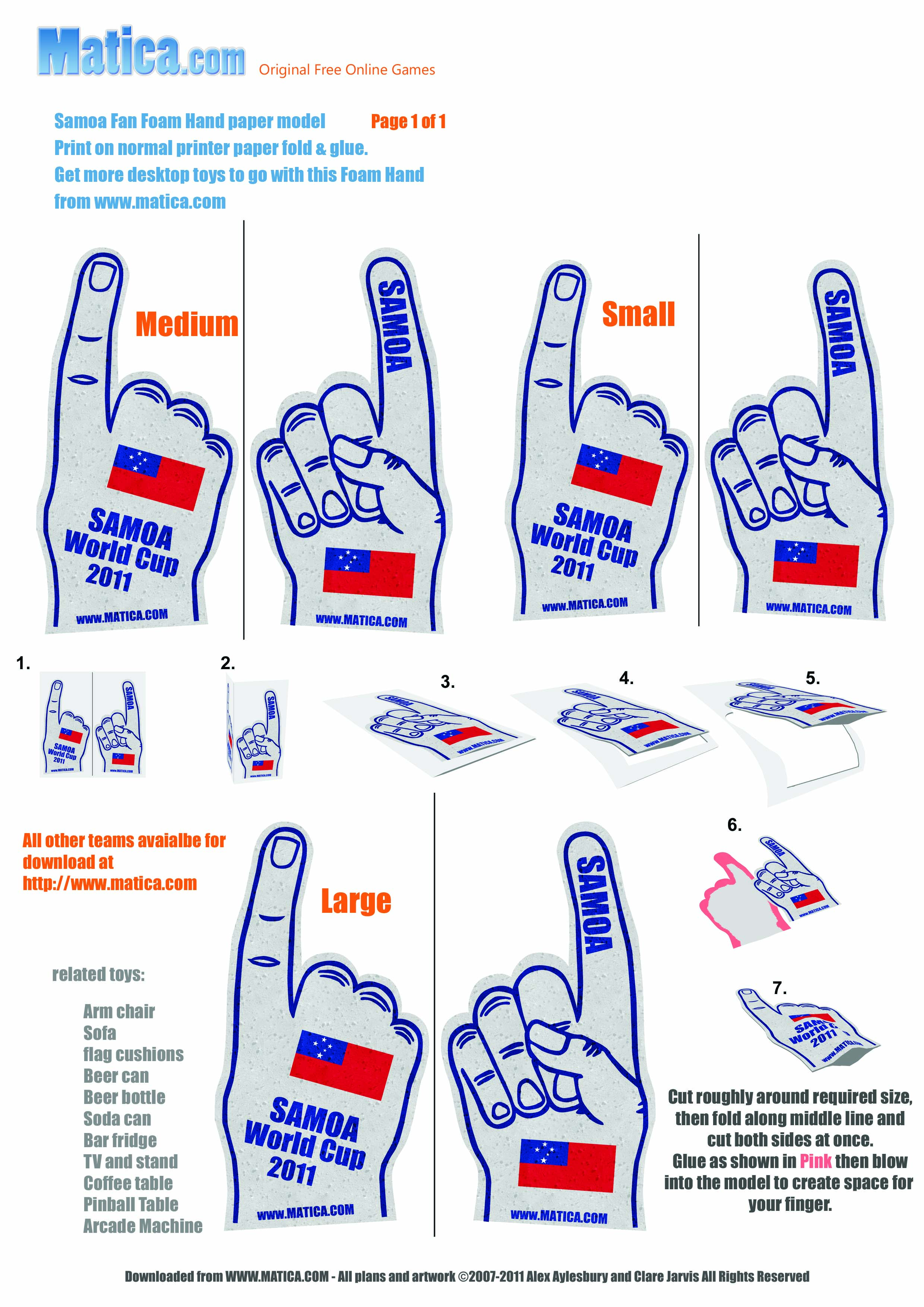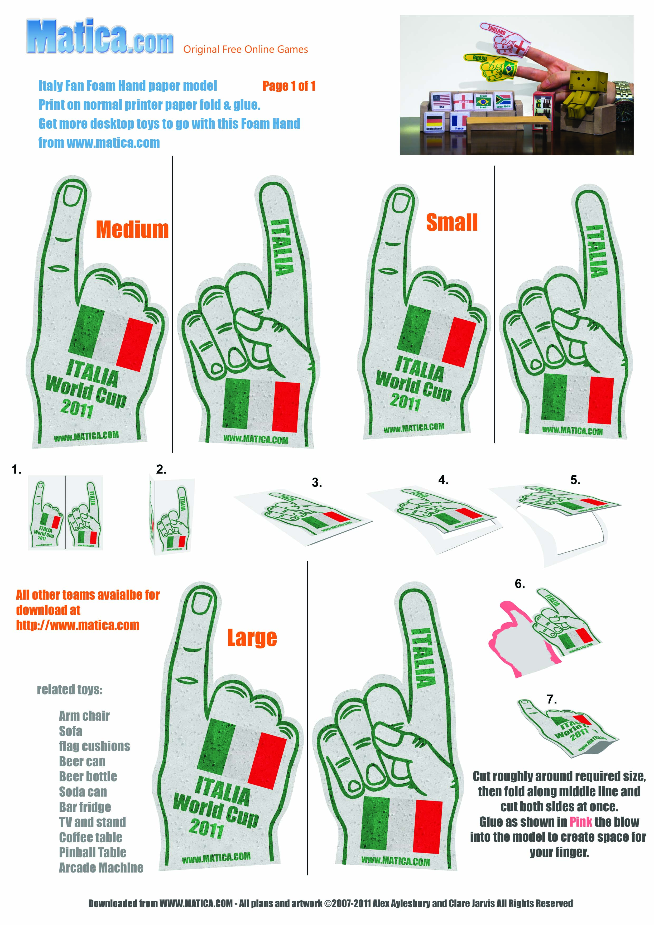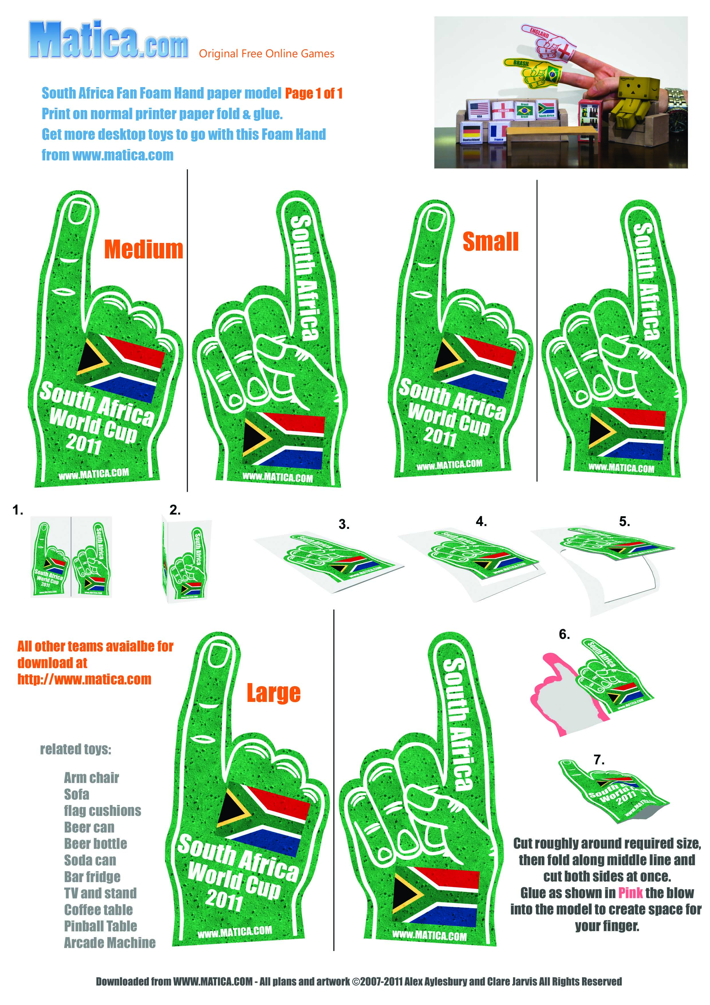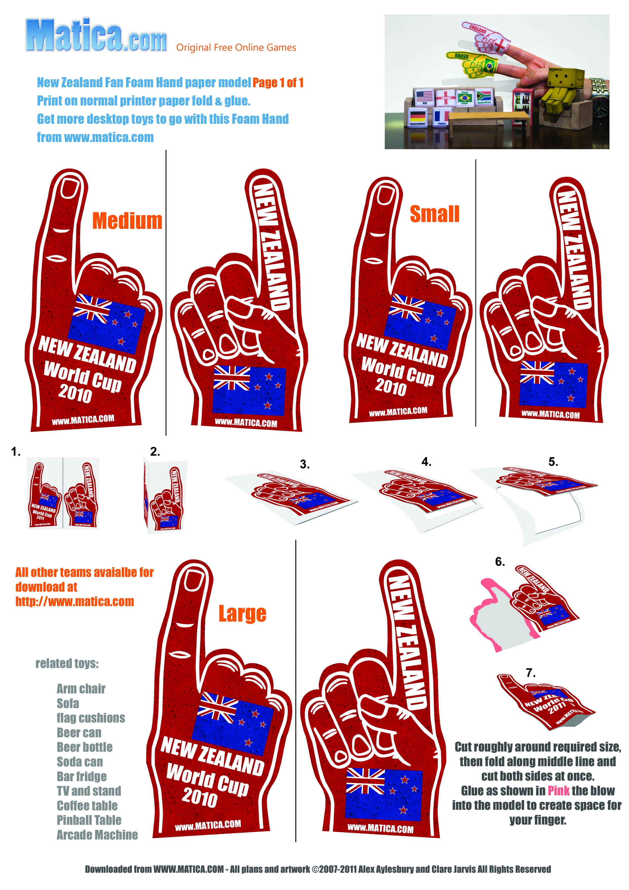 The foam hand plans fit onto one page of A4 paper. Please see below to download your country or team.