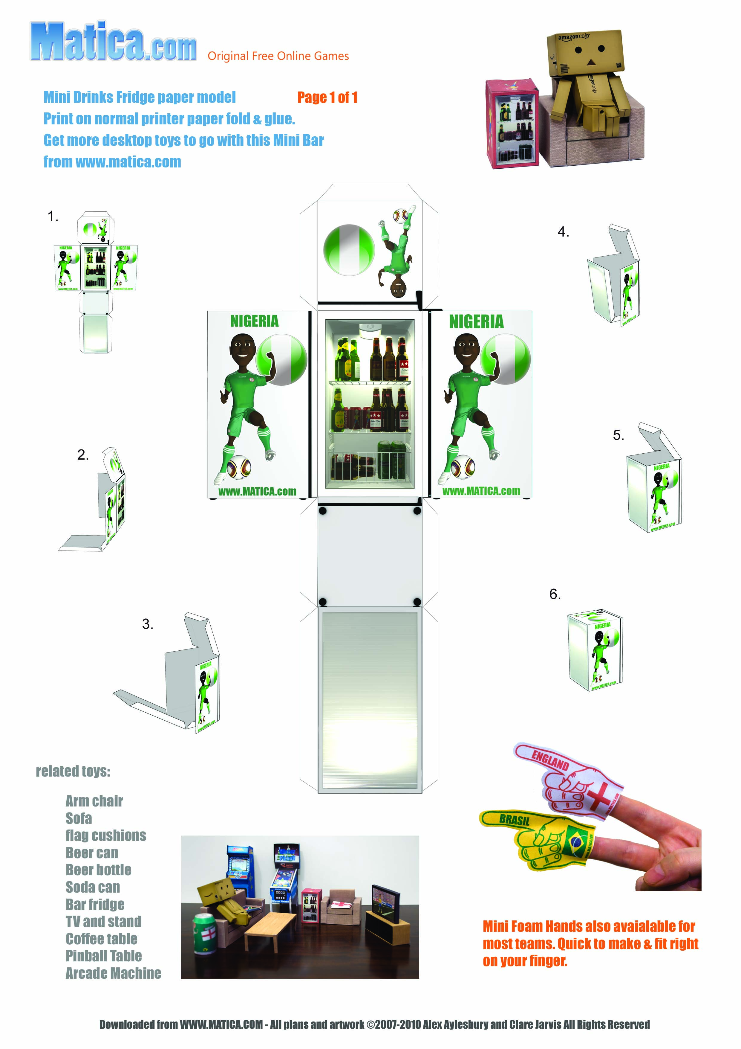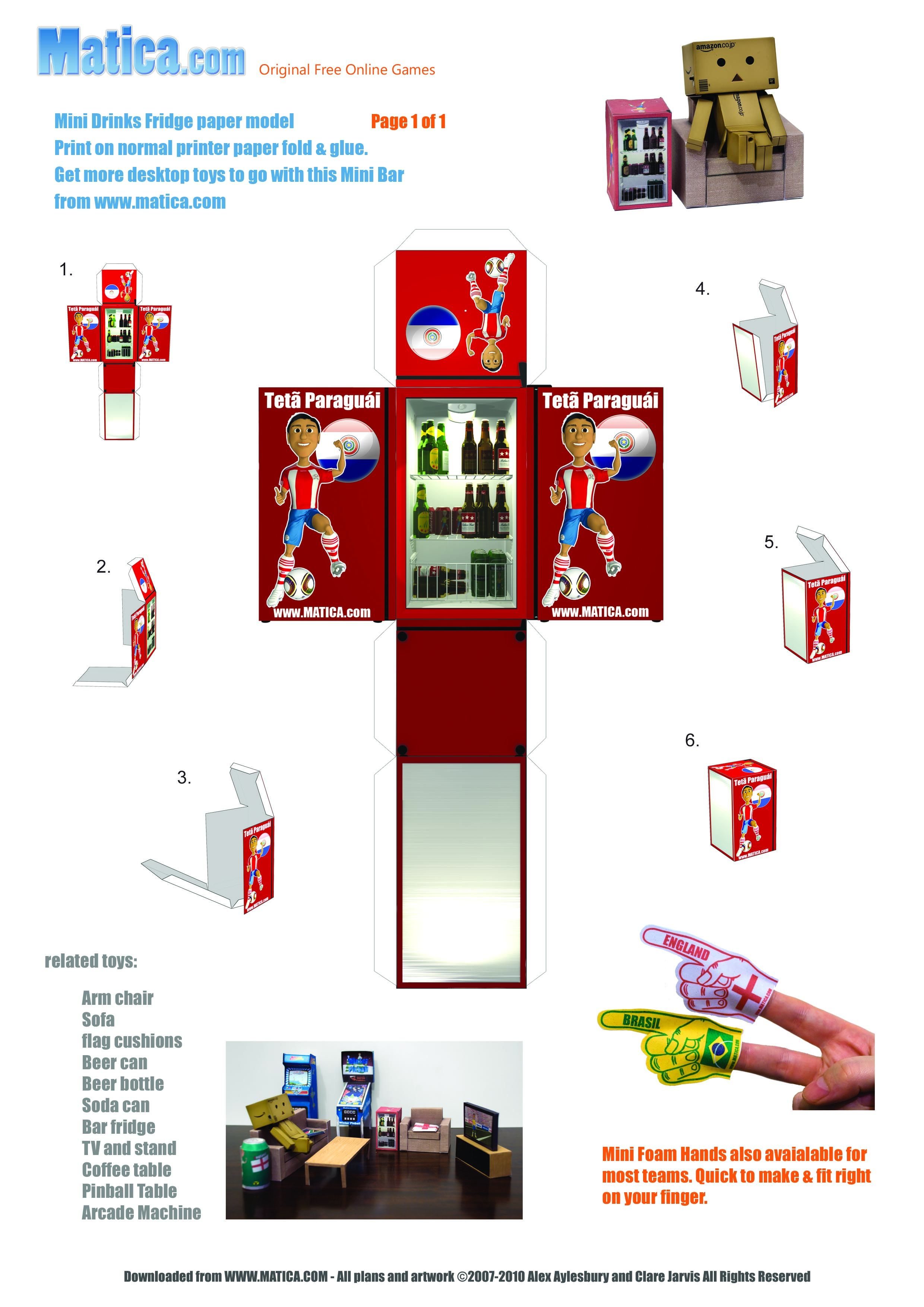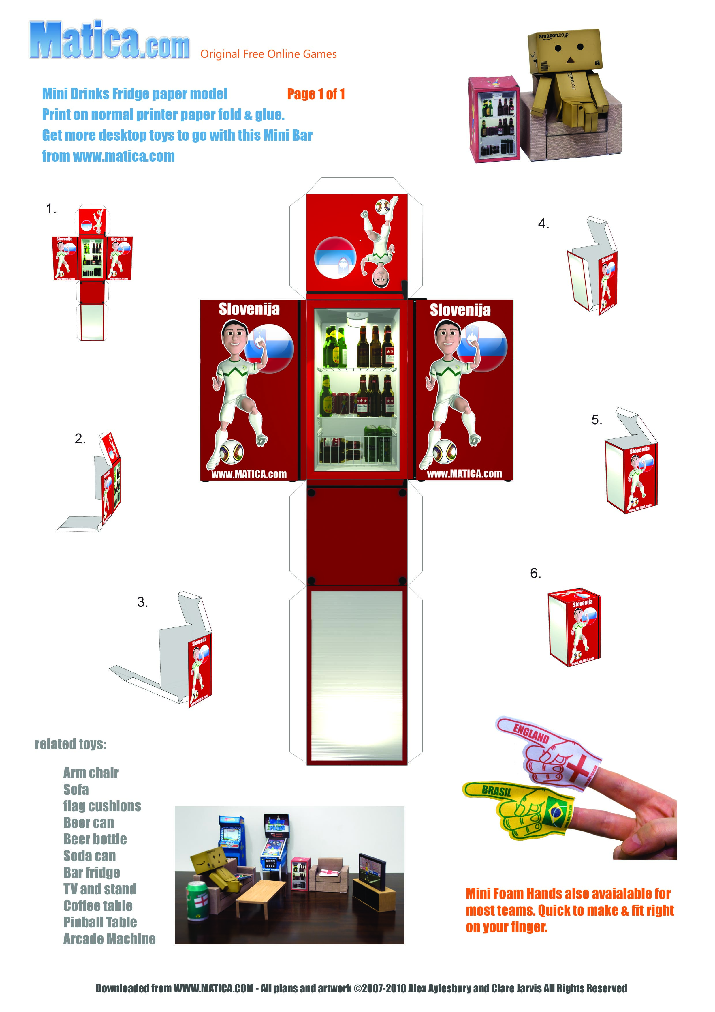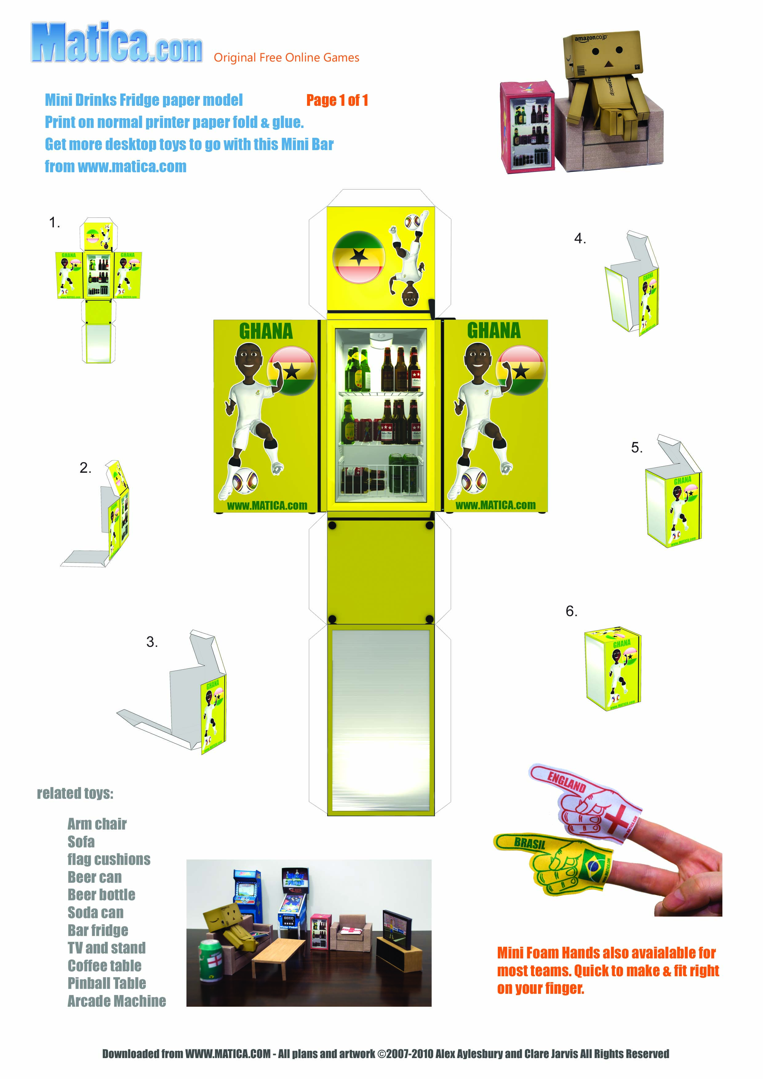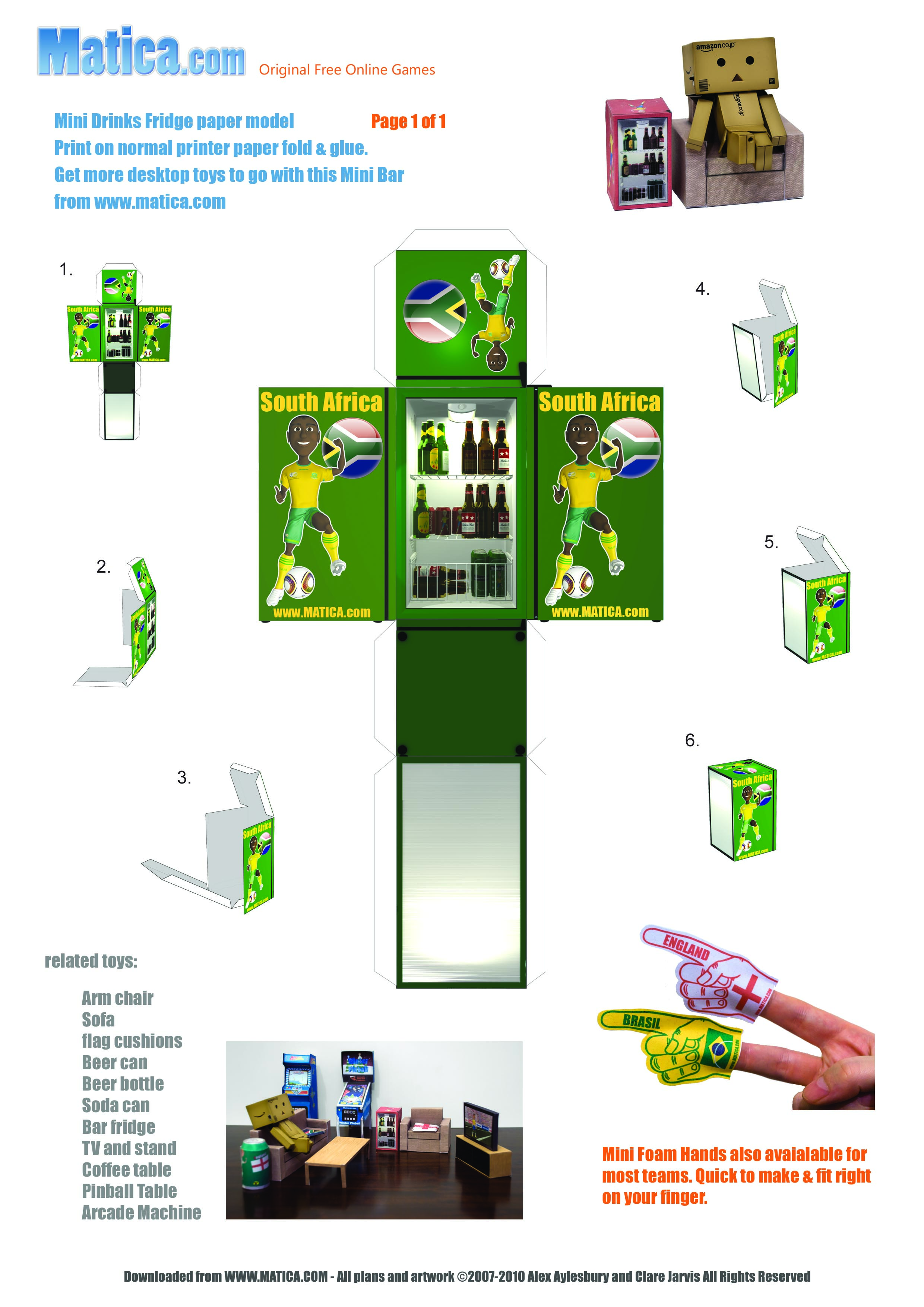 To celebrate the 2010 World Cup in South Africa we are releasing a set of printable paper toys to help you support your team. The beer fridge comes showing your team in action.