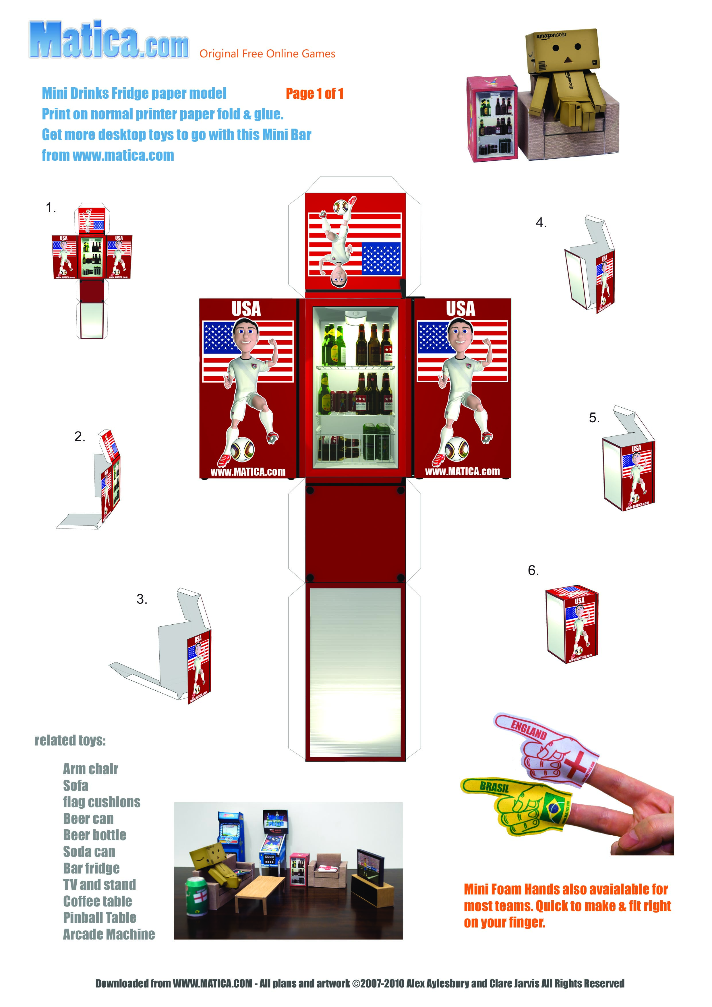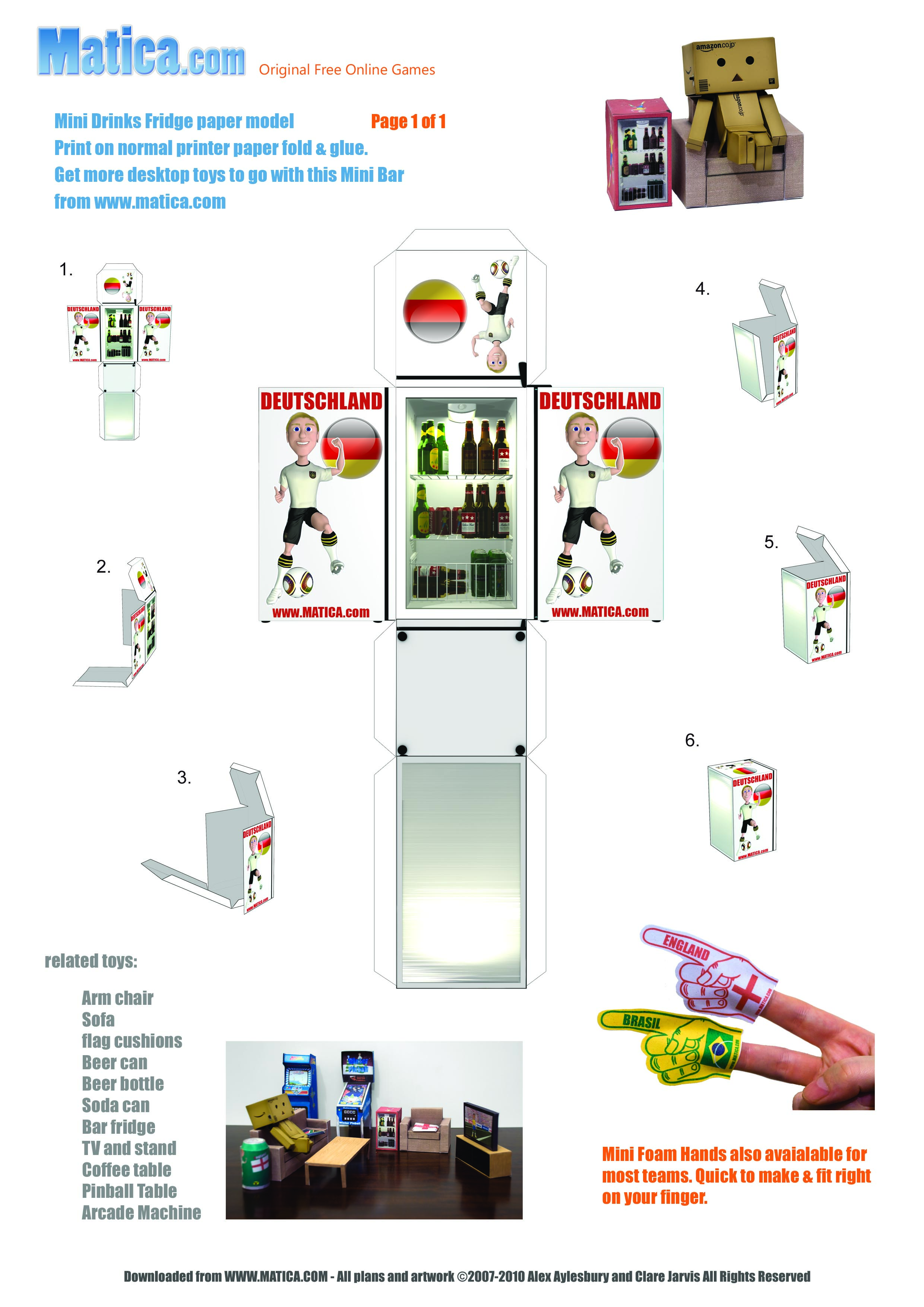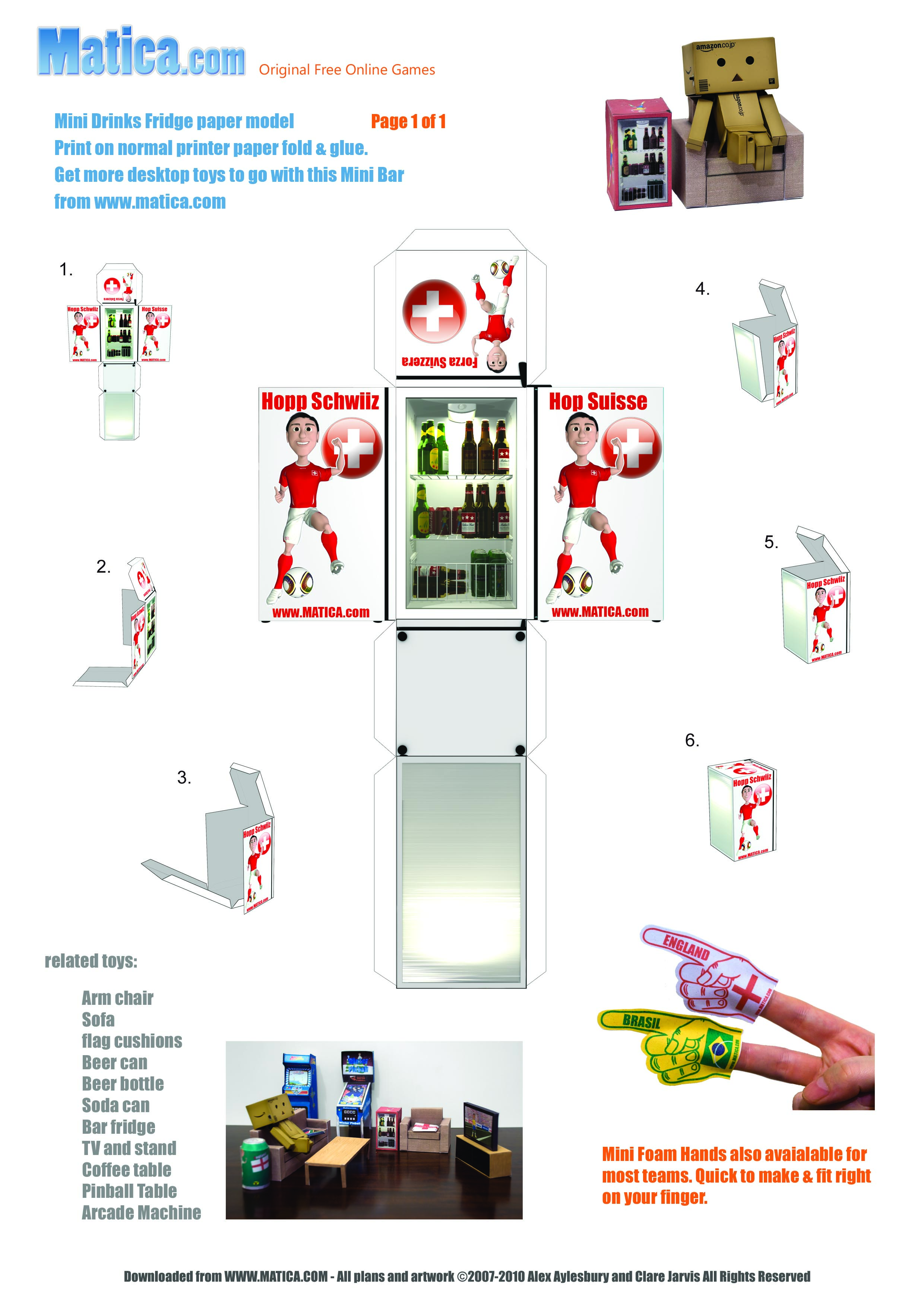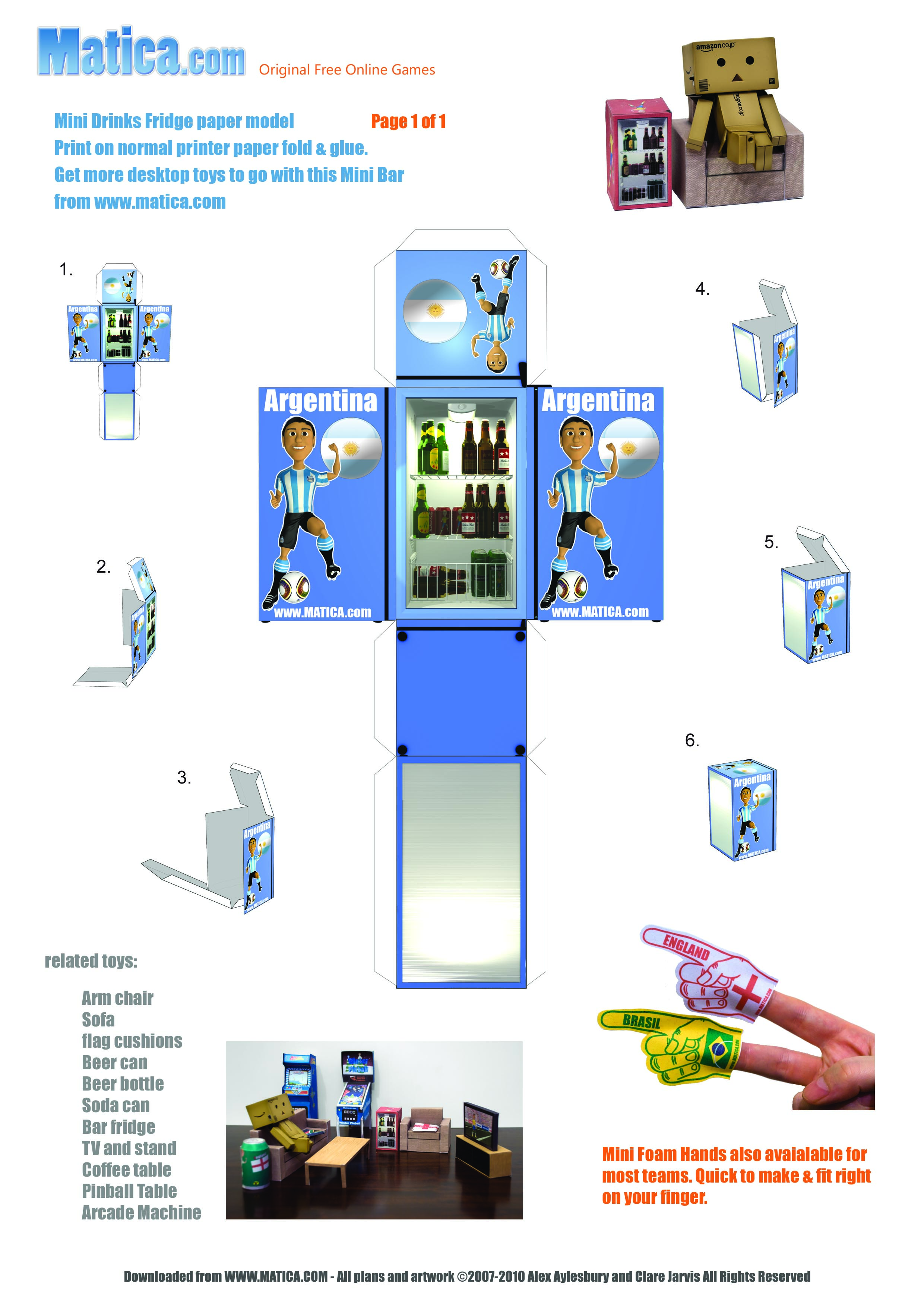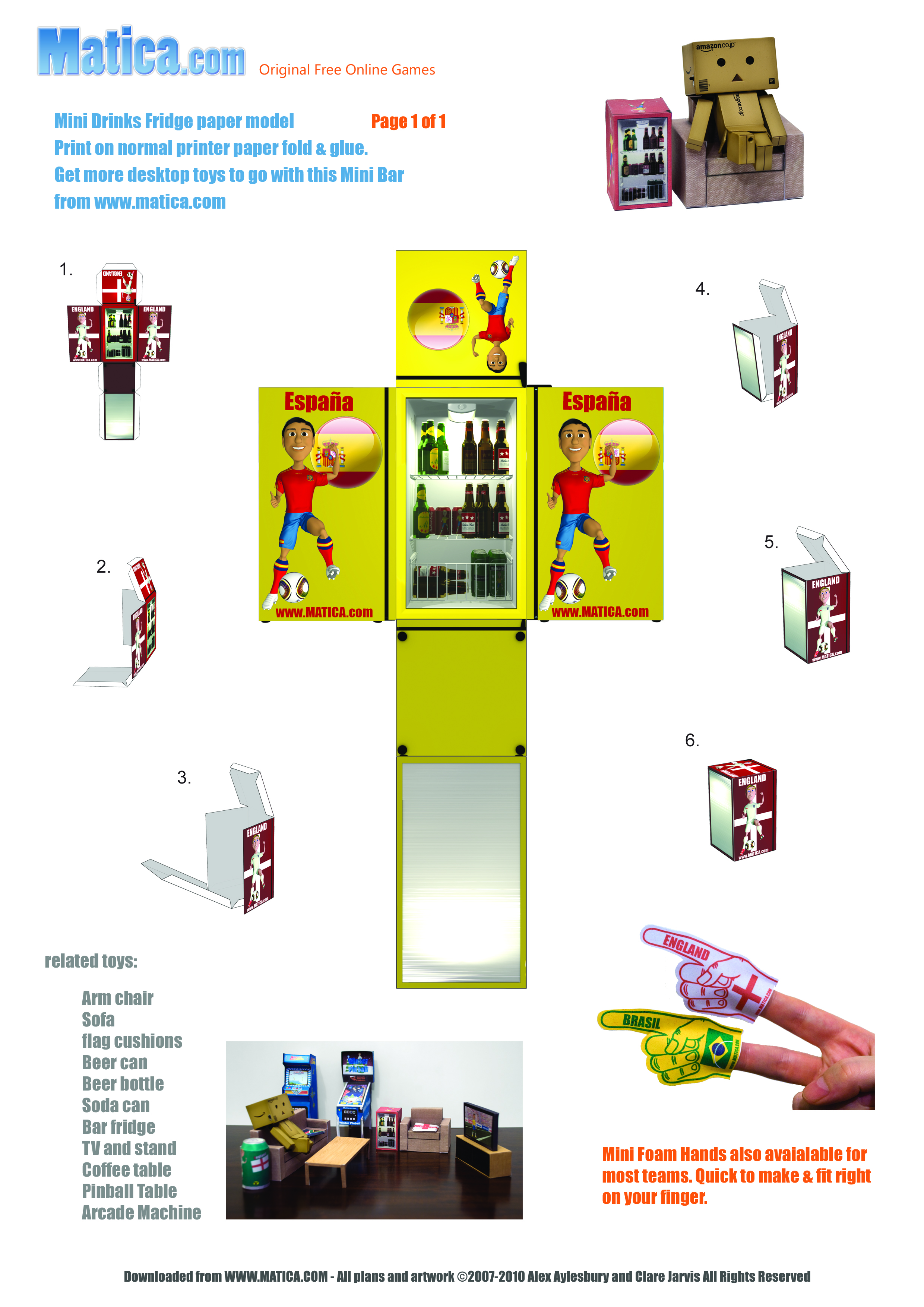 To celebrate the 2010 World Cup in South Africa we are releasing a set of printable paper toys to help you support your team. The beer fridge comes showing your team in action.